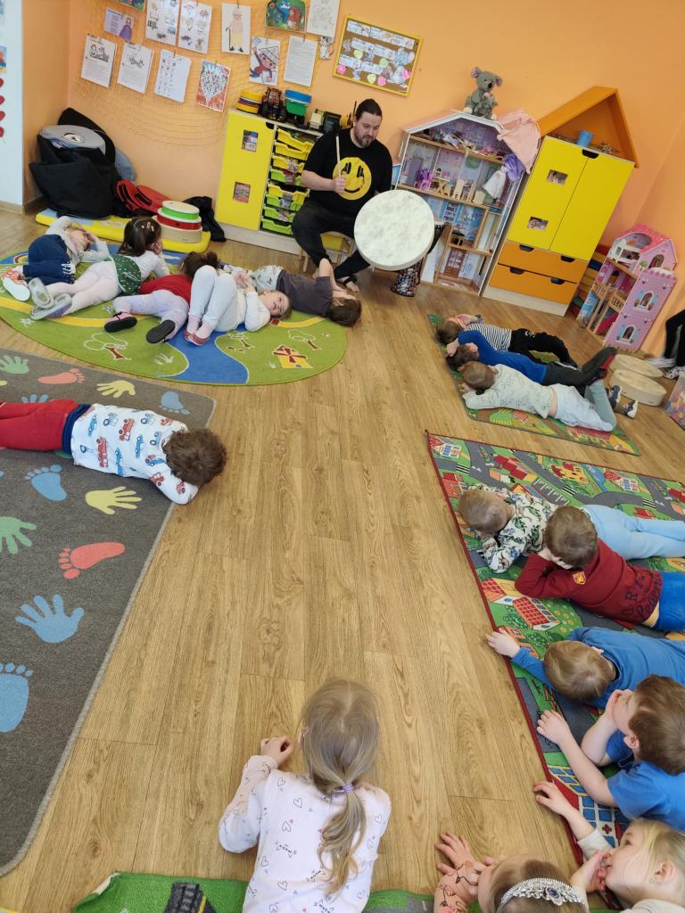 Děti se dozvěděly zajímavosti o různých typech bubnů i o afrických kmenech, které je tradičně používají. Každý si mohl vyzkoušet vlastní bubínek a společně jsme si zahráli na rytmizaci, volné bubnování, bubnování potichu i nahlas, rychle i pomalu. Nechyběla ani taneční hra "Na sochy", zpěv s doprovodem bubnů a na závěr příjemná relaxace při ukolébavce. Děti si program velmi užily a odcházely plné nadšení a nových zážitků. Už teď se těšíme, že pana Vídenského opět přivítáme i v příštím roce!