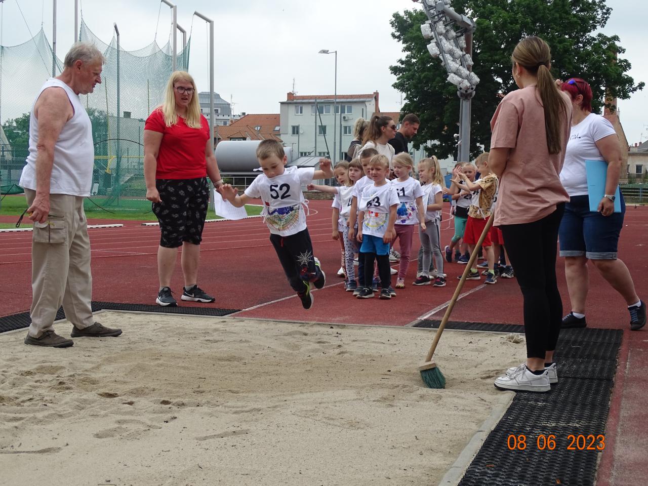 I v letošním školním roce jsme využili nabídky zúčastnit se miniatletických závodů. Pořadatelem této již tradiční akce je MŠ Dělnická ve Znojmě. Závody se uskutečnily na atletickým stadionu Horní park. Našim úkolem bylo uspořádat třídní kolo ve třech disciplínách