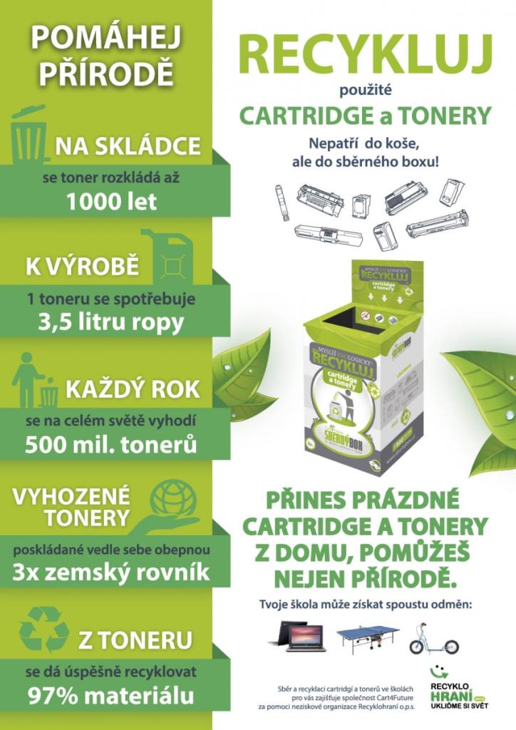 V rámci projektu Recyklohraní sbíráme v MŠ použité baterie a tonery do tiskáren. Děkujeme.